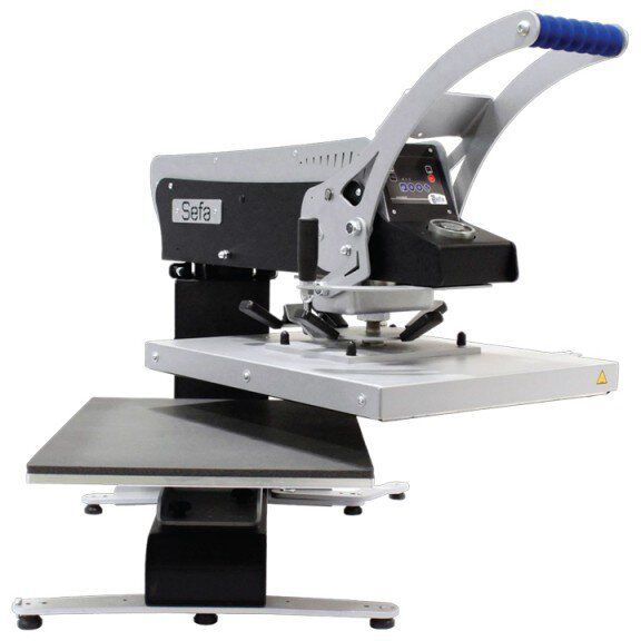 Presse de transfert à chaud à ouverture automatique et à dégagement latéral manuel. Pose de Flex ou de transferts sérigraphiques en petite série, sublimation textile, sublimation sur supports rigides. Temps de préchauffage, double compteur de pièces. Taille du plateau : 40x50cm. Pression : 590gr/m². Puissance : 2500W. Conçue et fabriquée en France. 2 ans de garantie sur la machine, 10 ans sur les éléments chauffants. Voir caractèristiques complètes dans la fiche PDF du produit. Caractéristiques : - Fabricant : SEFA - 1 taille(s) au choix : unique - 1 couleur(s) : unique